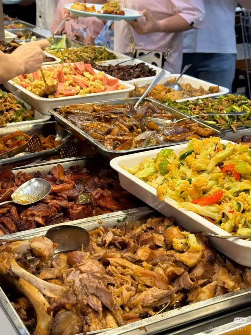 快餐食堂模式憑借豐富菜品和實惠價格,也成為商超吸引客流的“流量密碼”。永輝超市2023年11月試點食堂模式,主打平價現(xiàn)炒,推出“3個菜12元、4個菜15元”的盒飯;北京物美超市去年7月推出13元、19.9元兩檔自助餐,涵蓋涼菜、熱菜、湯品、水果等,支持堂食和打包,用餐時段曾排起長隊。