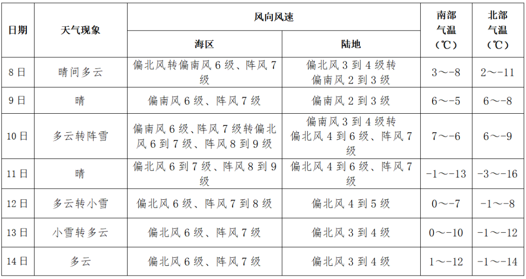 偏北風(fēng)3到4級(jí)轉(zhuǎn)偏南風(fēng)2到3級(jí)