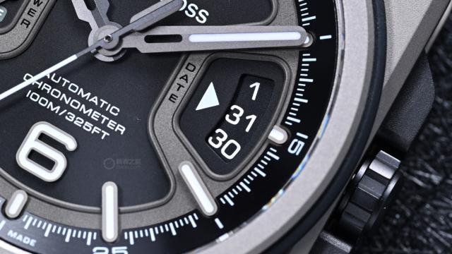 3點(diǎn)位的大日期顯示是一大亮點(diǎn),窗口尺寸較大,可同時(shí)顯示連續(xù)三天日期,相比傳統(tǒng)小方窗更便于日常查看。9點(diǎn)位的動(dòng)力儲(chǔ)存指示對(duì)應(yīng)機(jī)芯約70小時(shí)的動(dòng)儲(chǔ)范圍,直觀清晰。兩者均嵌入X形金屬框架內(nèi),既明確劃分表盤信息區(qū)域,又保持了儀表盤風(fēng)格。