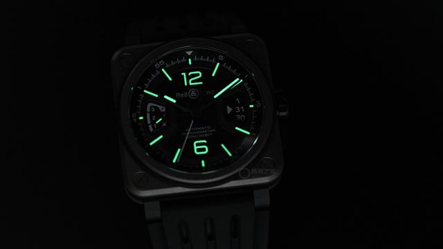 上手黑鈦款BR-X3 Black Titanium時(shí),其經(jīng)典設(shè)計(jì)語(yǔ)言瞬間抓人眼球:方形表殼搭配圓形表盤,四角螺絲固定,圓形表盤仿佛嵌入方形儀表面板,讓人聯(lián)想到品牌早期的駕駛艙儀表風(fēng)格。