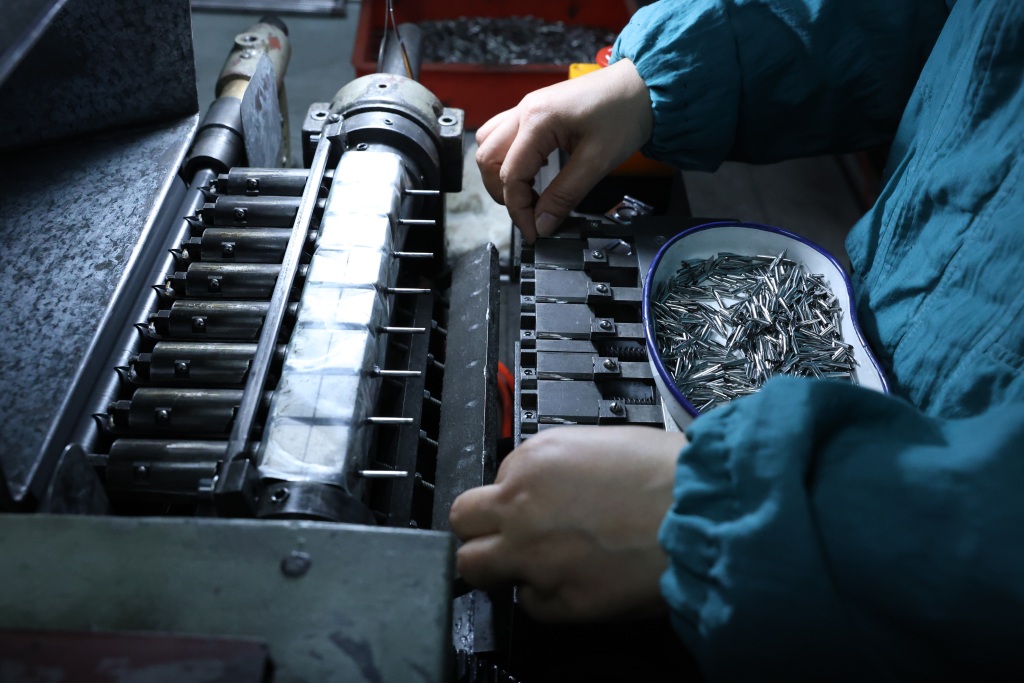 他已記不清磨壞過(guò)多少筆尖,每一枚廢筆尖都是成長(zhǎng)的臺(tái)階,也讓耐心與較真的態(tài)度刻進(jìn)了他的骨子里。“現(xiàn)在車間里聽(tīng)到的‘咔’的一聲壓合,看似簡(jiǎn)單,實(shí)則包含落型、沖商標(biāo)、翻身、沖孔、沖凹、罩圓、碰圓7道工序,只有每一步都精準(zhǔn),才能讓筆尖既美觀又書(shū)寫流暢。一支英雄鋼筆的筆尖要經(jīng)過(guò)35道工序,要練準(zhǔn)手感,就得反復(fù)打磨?!?/p>