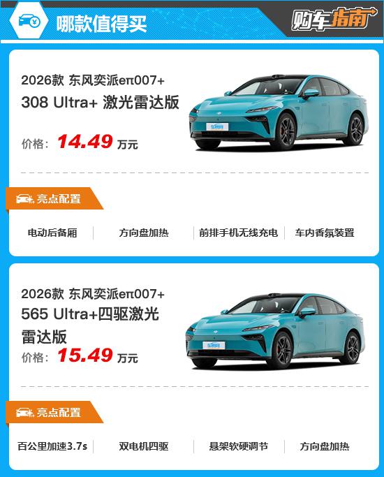 總的來(lái)說,如果您正在關(guān)注東風(fēng)奕派eπ007+,那么308 Ultra+激光雷達(dá)版和565 Ultra+四驅(qū)激光雷達(dá)版這兩款車型值得優(yōu)先考慮。