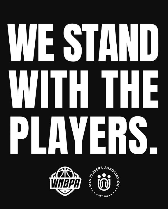 上月,NBA、NFL、MLB、MLS球員工會相繼發(fā)聲支持WNBPA:“她們理應(yīng)獲得體現(xiàn)自身價值與影響力的CBA?!?/p>