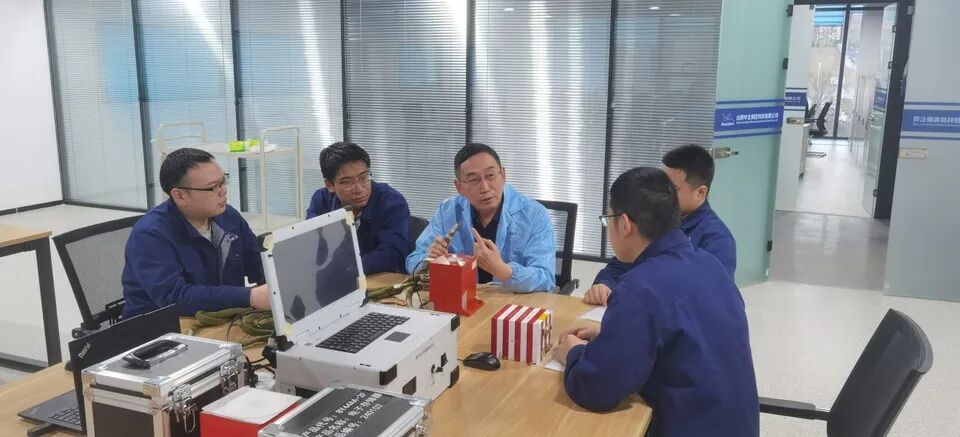 圖為團(tuán)隊(duì)成員圍繞“沙克網(wǎng)絡(luò)”測(cè)試系統(tǒng)匹配展開研討。