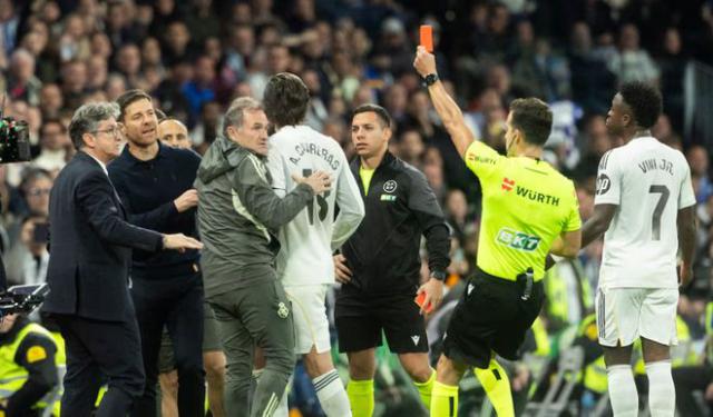 之后,巴爾韋德與羅德里戈也因抗議判罰被黃牌警告,金特羅還向皇馬替補席上的球員出示了紅牌。在裁判的《比賽報告》中提到,恩德里克“起身離開替補席,走出技術(shù)區(qū)域,對著第四官員大喊大叫,最終被教練團隊拉住”,正是這一行為導致他被直接紅牌罰下。