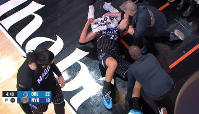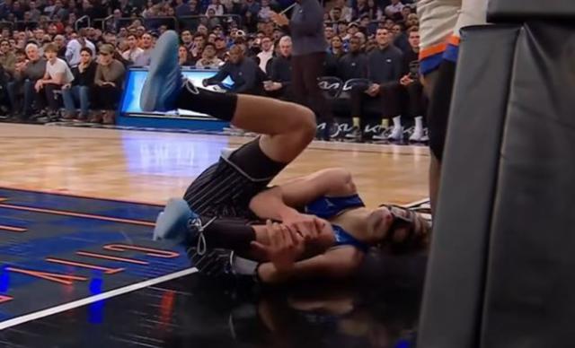 首節(jié)剩余4分43秒時,小瓦格納完成對布倫森的搶斷后快速沖至籃下,隊友布萊克送出空接傳球,尼克斯內(nèi)線胡克波爾蒂在嘗試封蓋時對小瓦格納犯規(guī)。小瓦格納落地姿勢異常扭曲,隨即痛苦抱膝倒地。