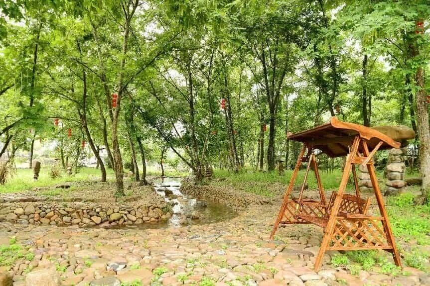 溪東灘林:經(jīng)改造提升,溪石矴步引游客入水中央,灘林內(nèi)有林下空間、草坪及天然鵝卵石,靜謐和諧。