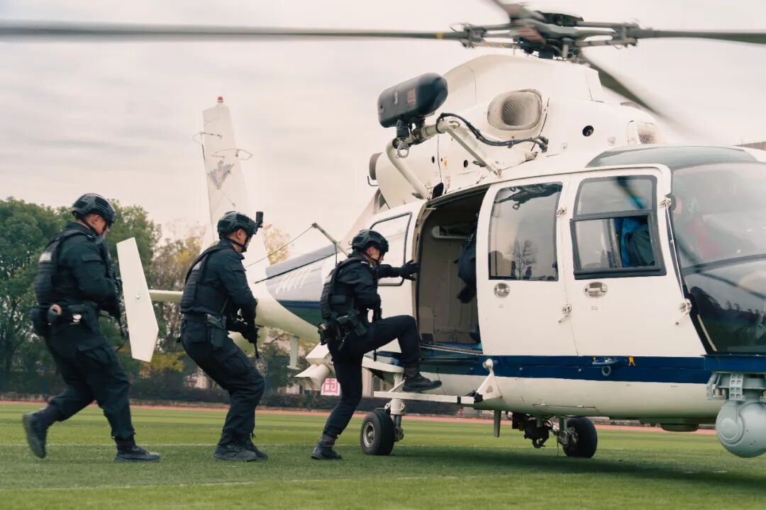空中,警用直升機(jī)轟鳴著盤旋,開展巡邏搜救和“空地一體”協(xié)同演練;地面上,穿著30斤重防護(hù)服的排爆手,正沉著地操控機(jī)器人,對“爆炸物”進(jìn)行精細(xì)的轉(zhuǎn)移操作。