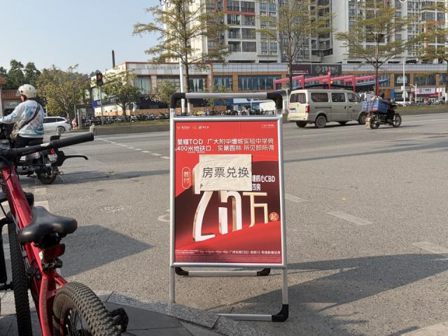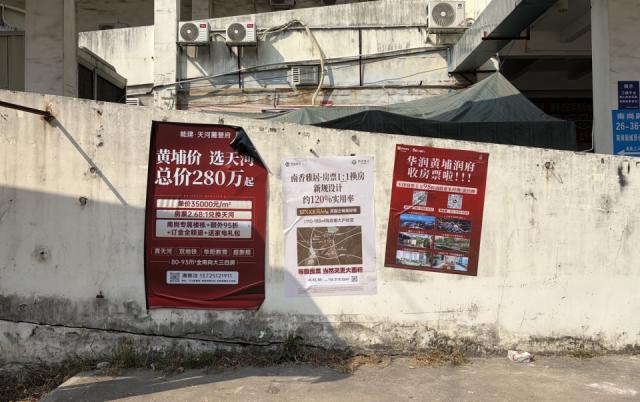 南崗村街頭巷尾被全市樓盤(pán)宣傳海報(bào)覆蓋。村民買(mǎi)菜經(jīng)過(guò)的肉菜市場(chǎng)對(duì)面墻上,天河與增城樓盤(pán)展開(kāi)競(jìng)爭(zhēng):天河“能建·天河麓譽(yù)府”打出“黃埔價(jià)、選天河”口號(hào),但單價(jià)高于房票補(bǔ)償標(biāo)準(zhǔn),兌換比例達(dá)2.68:1;增城樓盤(pán)以“房票1:1換房”為賣(mài)點(diǎn),喊出“等額房票,當(dāng)然買(mǎi)更大面積”。