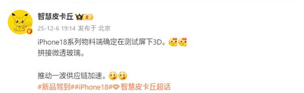 博主“智慧皮卡丘”透露,iPhone 18系列在物料端已確認測試屏下3D人臉識別技術,F(xiàn)ace ID組件有望實現(xiàn)隱藏。