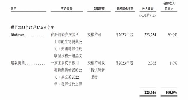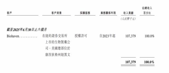 在過往記錄期間,高光制藥的收入主要來源于與Biohaven及建毅騰創(chuàng)簽訂的對外許可與合作協(xié)議,具體為向合作方授予知識產(chǎn)權(quán)所獲的不可退還、不可扣減前期付款。2023年及2025年上半年,公司最大客戶貢獻(xiàn)的收入分別達(dá)2.23億元及1.07億元,占同期總收入的比例約為99.0%及100.0%,而2024年公司收入為零。