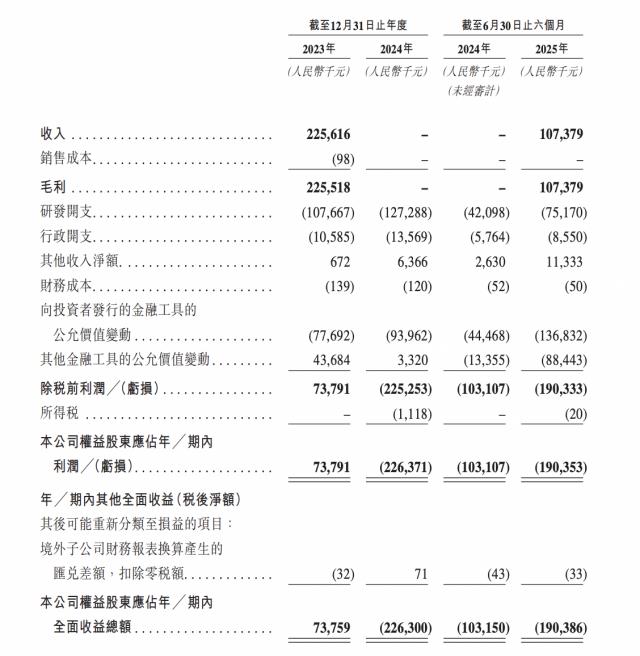 業(yè)績表現(xiàn)上,2023年、2024年及2025年上半年,高光制藥的收入分別為2.26億元、0元及1.07億元;研發(fā)投入依次為1.08億元、1.27億元及7517萬元;同期公司權(quán)益股東應(yīng)占利潤則為7379.1萬元、-2.26億元及-1.9億元。