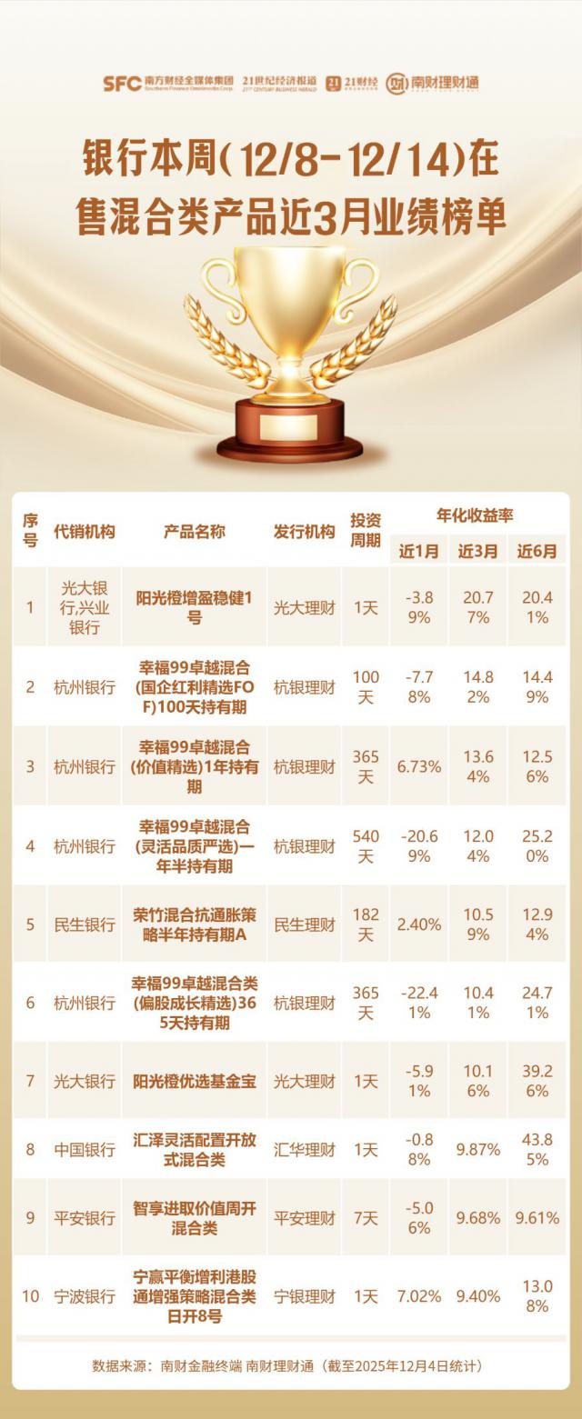 股份行理財公司混合類理財產(chǎn)品表現(xiàn)突出 近三月最高年化收益率超20%