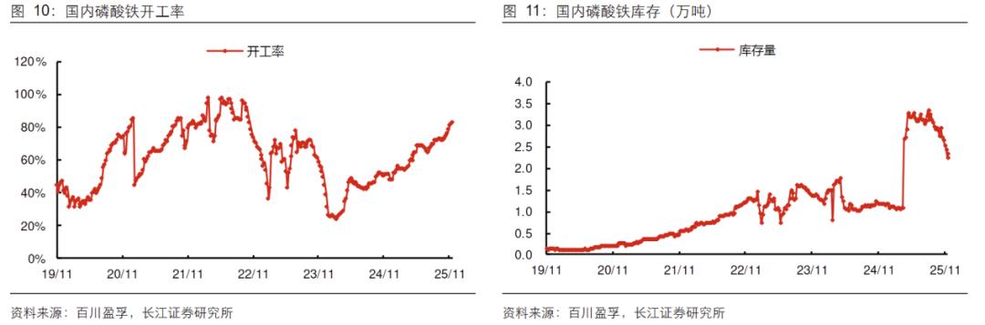 2025年以來,受益于動(dòng)力與儲(chǔ)能雙賽道需求協(xié)同拉動(dòng),磷酸鐵行業(yè)開工率快速回升,截至當(dāng)年11月,行業(yè)開工率已升至83.4%。隨著儲(chǔ)能需求持續(xù)釋放,磷酸鐵行業(yè)已突破周期底部拐點(diǎn),價(jià)格進(jìn)入反轉(zhuǎn)上行通道。
