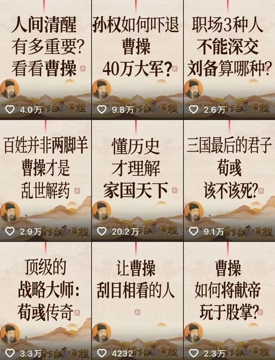 @芮淇|講透資治通鑒是知識(shí)賽道近期被關(guān)注的賬號(hào)。該賬號(hào)主打精講5000集全本《資治通鑒》,從2022年8月29日發(fā)布開(kāi)篇視頻至今,已發(fā)布超1500條作品,是高產(chǎn)創(chuàng)作者。