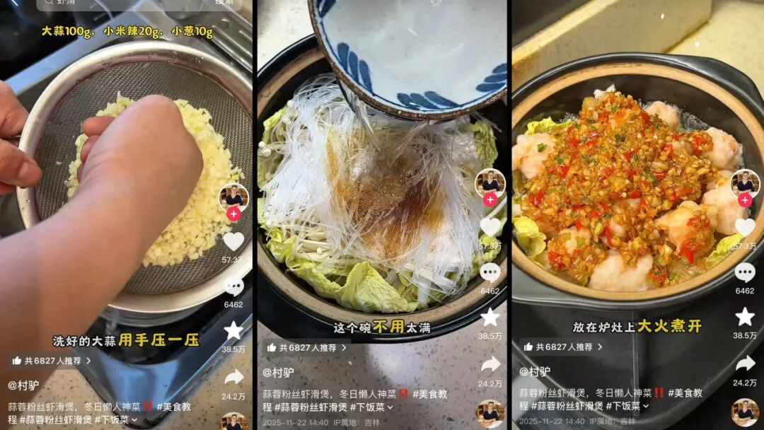 教學(xué)過(guò)程中,從食材選擇、切菜方式、火候控制到調(diào)料用量,每個(gè)步驟@村驢都會(huì)詳細(xì)展示和講述,還會(huì)預(yù)判新手可能遇到的問(wèn)題并提前糾正。每條教程直接切入主題,節(jié)奏緊湊,無(wú)廢話,信息密度高,這種專(zhuān)注技術(shù)要點(diǎn)的風(fēng)格契合“保姆”定位。