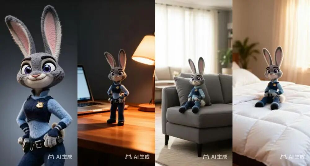從實(shí)際體驗(yàn)過(guò)程來(lái)看,LongCat-Image在“連續(xù)指令可編輯性”方面的表現(xiàn)較為穩(wěn)定。我們直接使用近期熱門的《瘋狂動(dòng)物城2》相關(guān)圖片進(jìn)行測(cè)試,在同一角色的基礎(chǔ)上連續(xù)執(zhí)行多輪修改指令。