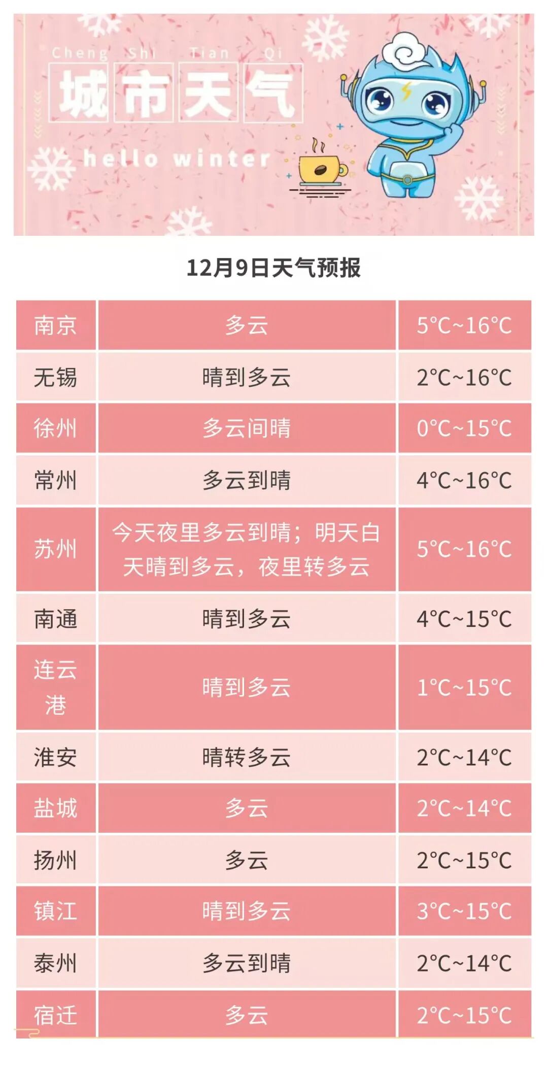 12日起,無(wú)錫受較強(qiáng)冷空氣影響,出現(xiàn)降溫和弱降雨過(guò)程,15日早晨最低氣溫將降至-2℃左右。早晚體感寒冷,易誘發(fā)心腦血管、呼吸道疾病及感冒,公眾需注意防風(fēng)保暖。