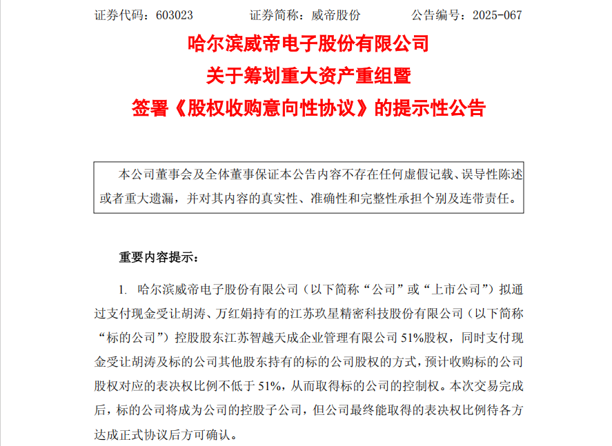 突發(fā)漲停!威帝股份推進(jìn)重大資產(chǎn)重組,擬現(xiàn)金收購(gòu)玖星精密控制權(quán)
