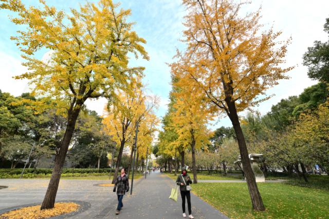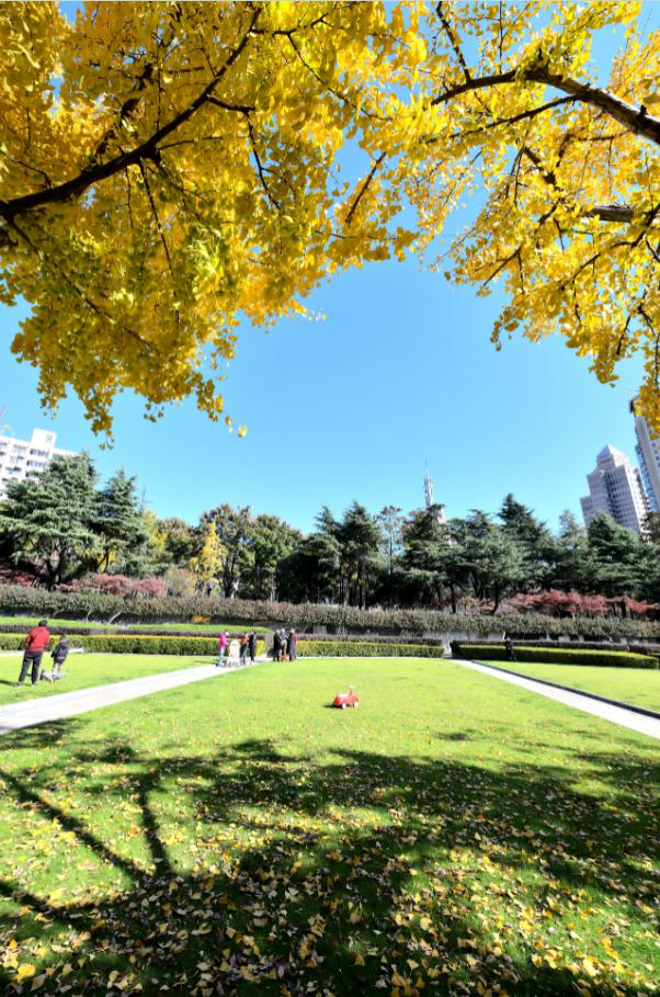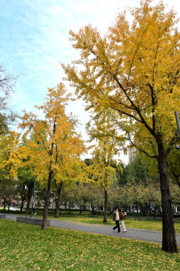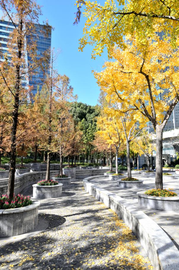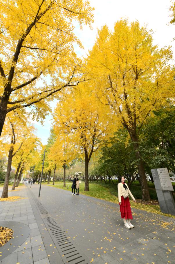 這里是城市中心的呼吸之地。銀杏整齊排列,宛如身披金甲的衛(wèi)士,守護(hù)著一方寧靜的天地。