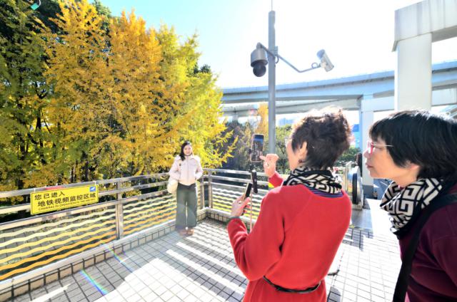 通勤的日常,因為一抹亮色而變得輕盈。出口處的幾株銀杏,成了匆忙旅途中的“視覺驛站”。