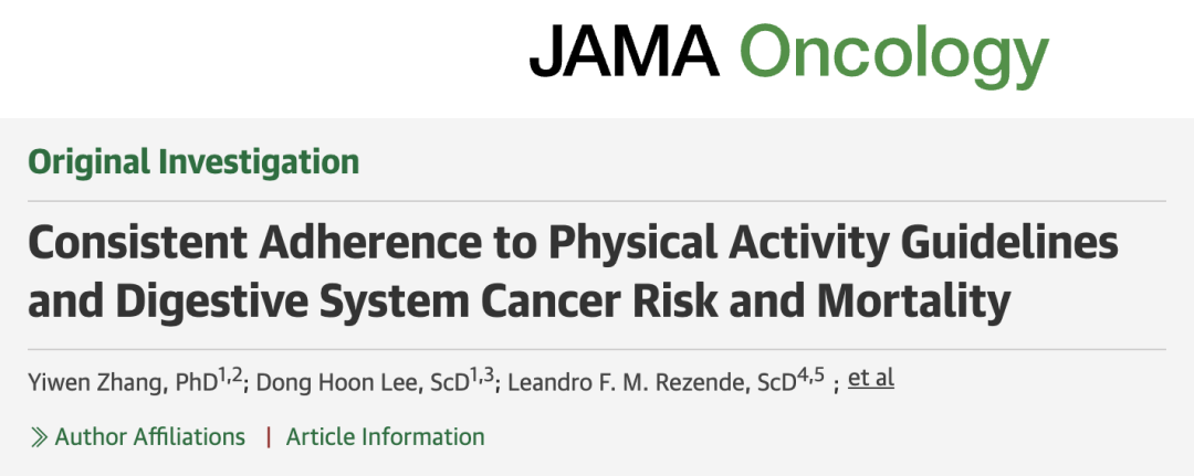 ①Consistent Adherence to Physical Activity Guidelines and Digestive System Cancer Risk and Mortality. JAMA Oncol. Published online October 30, 2025.