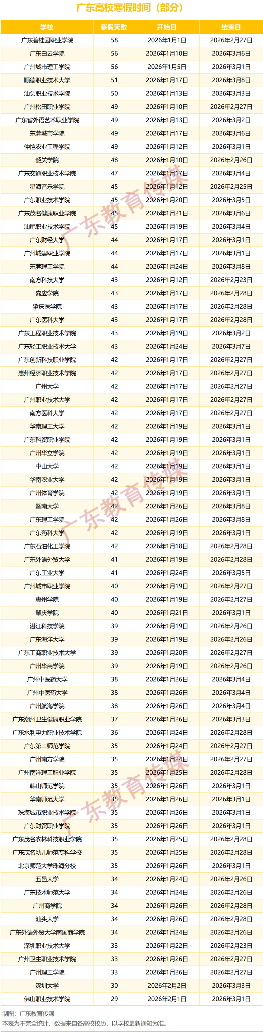 廣東寒假安排出爐!這所高校假期長達(dá)58天