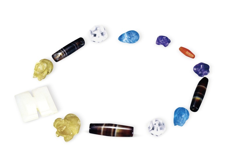 新莽時期微雕雜寶項飾(江蘇盱眙金馬高速30號墓出土),由琉璃、水晶、瑪瑙組成,色彩多樣,或許便是漢晉人所認知的“十種流離”