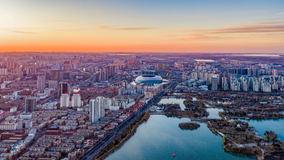 往東看的景色更絕,濱海新區(qū)的摩天樓建筑群在晨光中閃閃發(fā)光,濱城與津城遙相呼應,畫面美不勝收。