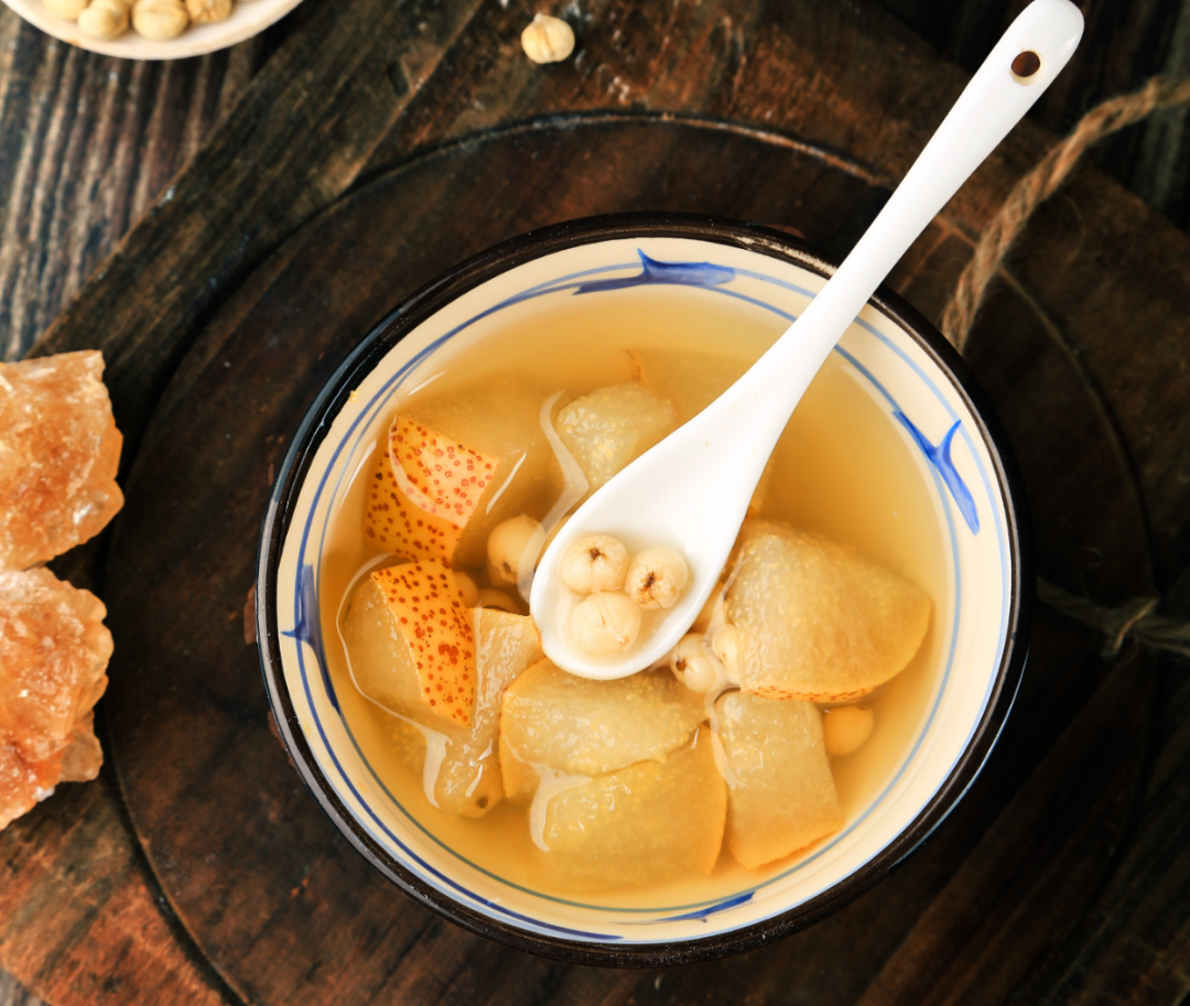 功效:雪梨有滋潤的作用,蓮藕能清熱,蜂蜜可以滋補,三者搭配在一起,能起到滋陰潤肺、生津止渴、清熱化痰的效果。這道藥膳特別適合干燥的季節(jié)食用,對于肺燥咳嗽、咽喉干癢、皮膚干燥、大便不通暢的人也很適用。需要注意的是,不能在羹湯沸騰的時候加入蜂蜜,避免高溫破壞蜂蜜中的活性成分和營養(yǎng)價值。