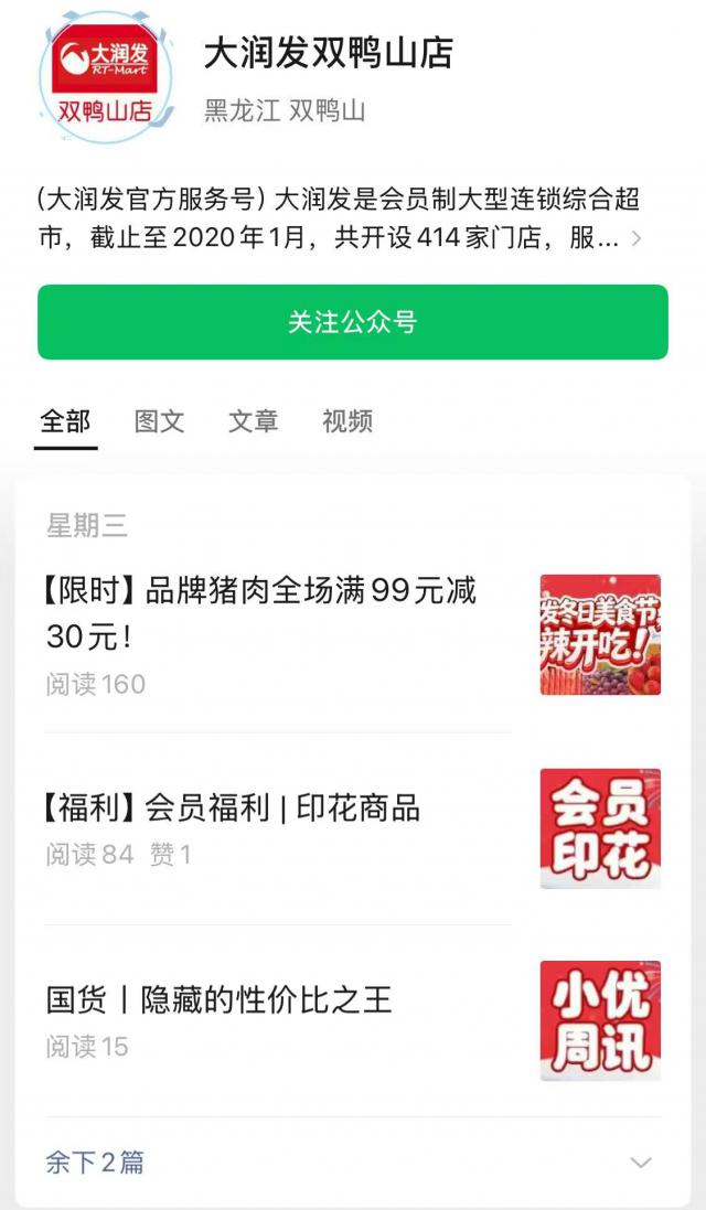 雙鴨山大潤發(fā)微信公眾號 ( 來源:網(wǎng)絡(luò)截圖 )
