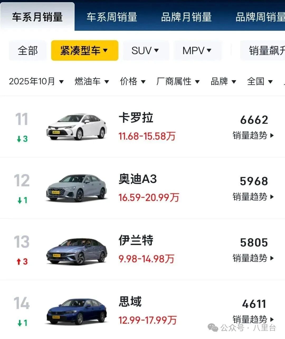 在緊湊型轎車領(lǐng)域,奧迪銷量遠(yuǎn)超奔馳寶馬,但看緊湊型轎車排行榜會(huì)發(fā)現(xiàn),奧迪已與卡羅拉在同價(jià)位競(jìng)爭(zhēng)。以價(jià)換量的模式,終點(diǎn)在哪里?