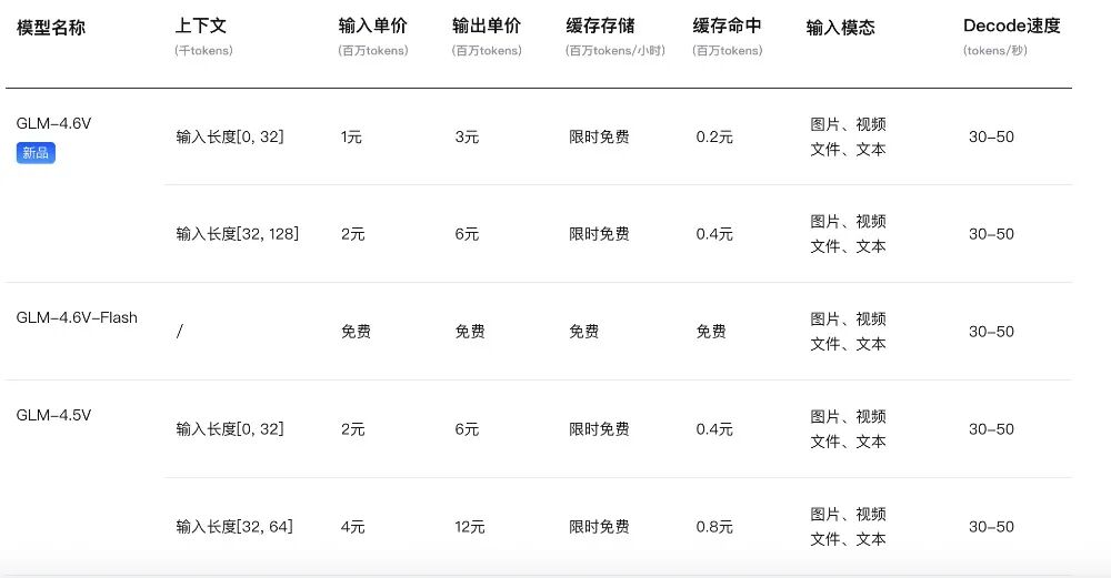 價(jià)格方面,GLM-4.6V系列較GLM-4.5V降價(jià)50%,API調(diào)用價(jià)低至輸入1元/百萬tokens、輸出3元/百萬tokens,而GLM-4.6V-Flash則全面免費(fèi)。