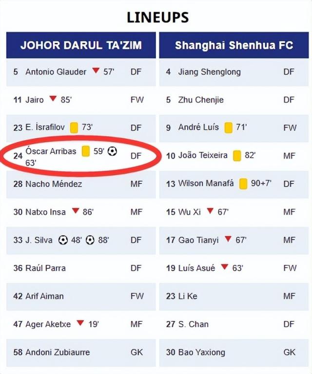 不過,關(guān)于阿里巴的黃牌數(shù)量存在爭議。德國轉(zhuǎn)會市場網(wǎng)站的統(tǒng)計顯示,阿里巴僅累積2張黃牌,爭議點(diǎn)在于柔佛新山對陣上海申花的比賽中,第59分鐘出現(xiàn)的一張黃牌,在部分統(tǒng)計中未明確標(biāo)注為阿里巴所得,但官方比賽記錄卻顯示該黃牌屬于阿里巴(見下圖)。究竟是統(tǒng)計烏龍,還是黃牌數(shù)據(jù)準(zhǔn)確,最終需以亞足聯(lián)的確認(rèn)結(jié)果為準(zhǔn)。