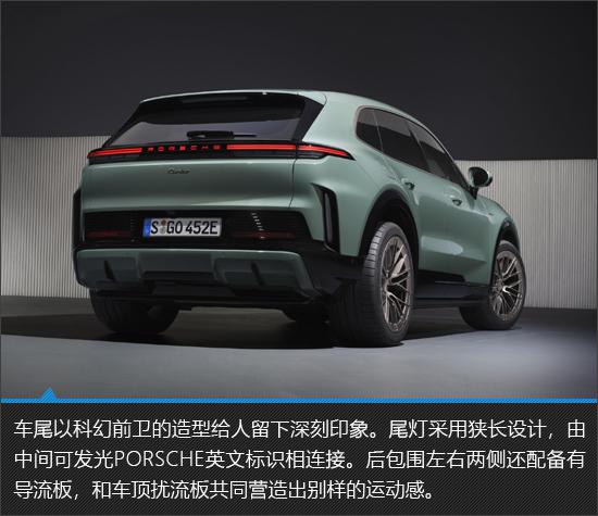 與國(guó)內(nèi)在售的燃油、混動(dòng)版Cayenne相比,新車外觀有了大幅調(diào)整。封閉式前臉和一體式尾部擴(kuò)散器設(shè)計(jì),明確了其純電身份??諝鈩?dòng)力學(xué)方面,新車車頭配備主動(dòng)開閉式進(jìn)氣格柵,車尾兩側(cè)設(shè)有兩個(gè)半隱藏式可伸縮導(dǎo)流板,高速行駛時(shí)能增強(qiáng)車身穩(wěn)定性。尺寸上,新車長(zhǎng)寬高分別為4985mm×1980mm×1674mm,軸距達(dá)3023mm。