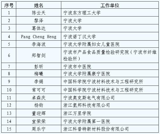 寧波最高科學(xué)技術(shù)獎獲獎人員名單