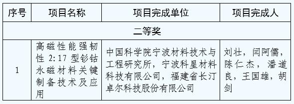 寧波市技術(shù)發(fā)明獎獲獎項目名單