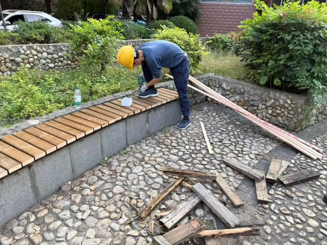 經(jīng)協(xié)商,改造項目敲定:更新防滑石材棋牌座椅、防腐木質(zhì)休閑長椅,細(xì)節(jié)里藏著居民對美好生活的期待。