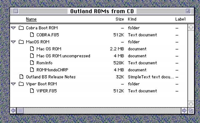 這些光盤的刻錄時(shí)間集中在1997年5月至9月。除操作系統(tǒng)核心文件外,還包含Mac OS 8相關(guān)的"Outland 1.1B"軟件、詳細(xì)的兼容性說明文檔、Mac OS授權(quán)擴(kuò)展文件,以及適配"較新"硬件的系統(tǒng)啟動(dòng)程序(System Enabler)。