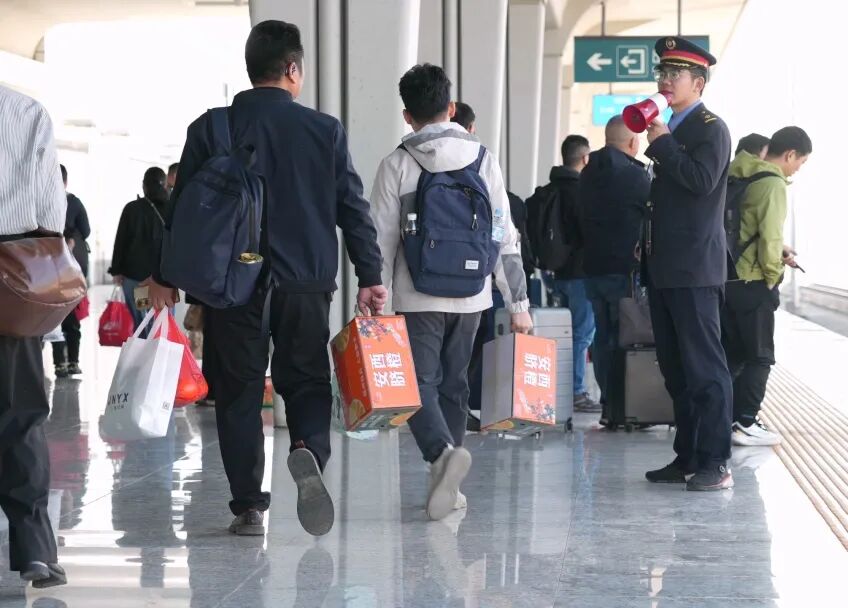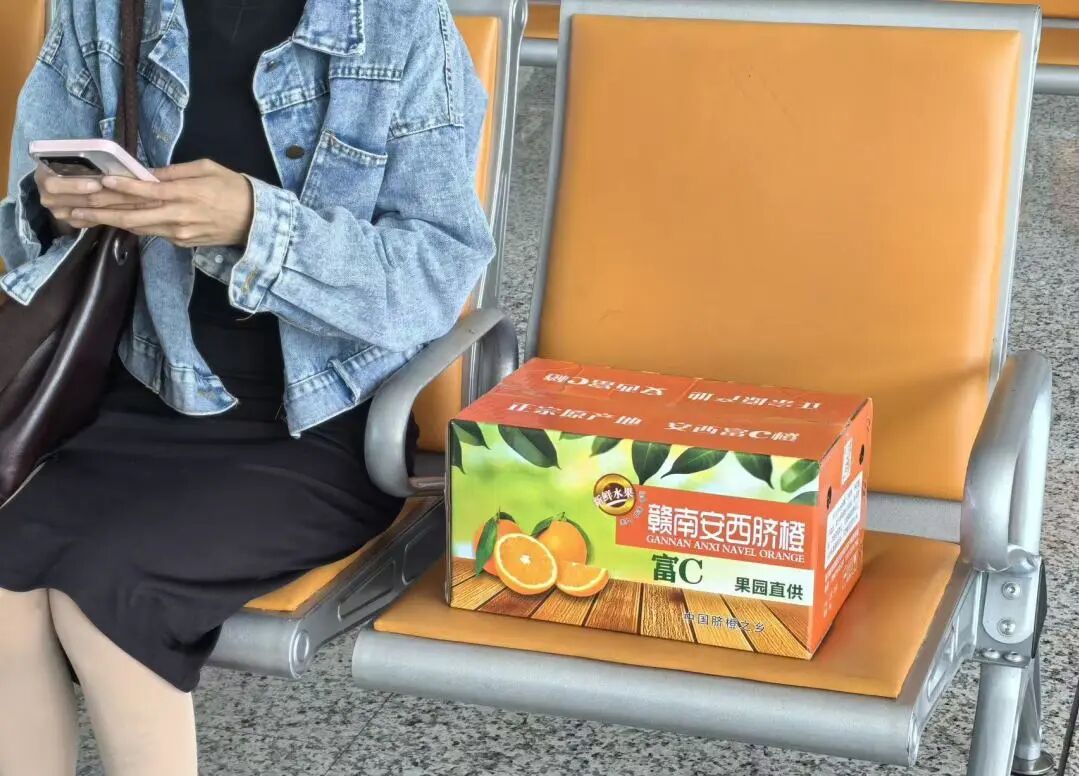 為了保障旅客出行順暢,信豐西站在安檢區(qū)配備了防擠壓的鮮果專用筐,還增派了工作人員,為來采摘臍橙的旅客提供引導(dǎo)和行程咨詢服務(wù)。
