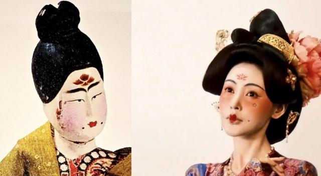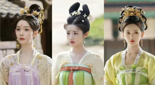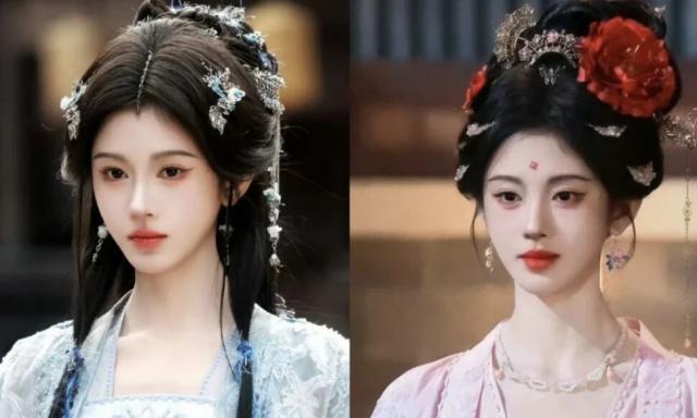 在傳統(tǒng)妝容里,最容易被誤解的當屬唐妝。唐妝的特點并非“濃”,而是“紅”,講究粉面細眸以及多樣的眉形嘗試,但在如今的審美認知中,唐妝卻被等同于濃妝的代名詞。為了追求浮夸的效果,各種元素堆砌,還硬加上現(xiàn)代化的亮片眼妝和眼線,妝容幾乎掩蓋了演員自身的面部特色,重點在于吸引眼球,而非為角色服務。