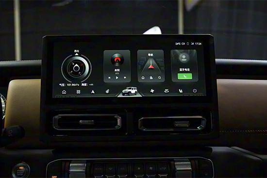 內(nèi)飾部分,新車整體延續(xù)了硬派SUV的設(shè)計風(fēng)格,在增強科技感的同時,也十分注重實用性與操作便捷性,空調(diào)和越野功能控制區(qū)都采用了實體按鍵布局。配置上,新車配備了10.25英寸全液晶儀表與12.3英寸中控屏組成的雙聯(lián)屏,支持導(dǎo)航及手機互聯(lián)功能,并且全系標(biāo)配前/后駐車雷達與360°全景影像。