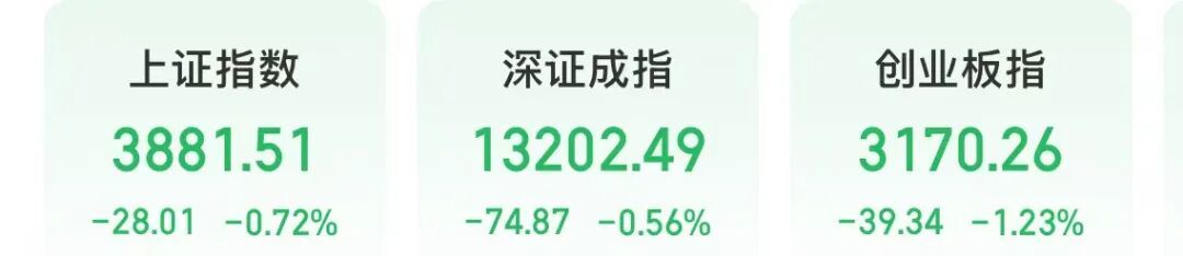 截至上午收盤,上證指數(shù)下跌0.72%,深證成指下跌0.56%,創(chuàng)業(yè)板指下跌1.23%。