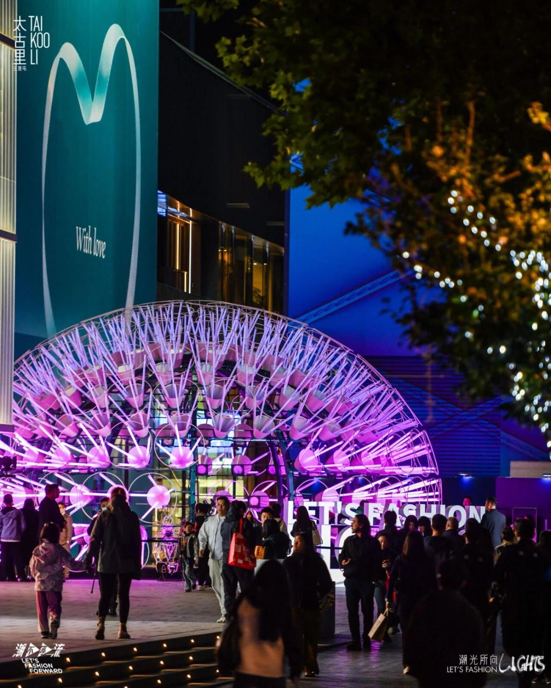 此外,三里屯太古里的燈光藝術(shù)已走過(guò)十余年深耕之路,自2013年首次引入國(guó)際知名燈光藝術(shù)作品起,便以每年不間斷的創(chuàng)意呈現(xiàn),成為北京夜經(jīng)濟(jì)中極具藝術(shù)感的標(biāo)志性活動(dòng)。如,2023年展出了由澳大利亞AMIGO&AMIGO工作室創(chuàng)作的“電光豎琴”和“觸光捕樂(lè)”互動(dòng)裝置;2024年燈光節(jié)則帶來(lái)了“蒲公英”中國(guó)首展和“變形記”全球首展。2025年的The Stage主舞臺(tái)呈現(xiàn)【登臺(tái)亮相:出色手藝】,以“燈光”為媒介,用紅色燈球營(yíng)造獨(dú)特氛圍,成為“潮流碰撞、文化發(fā)聲”的全新場(chǎng)域。