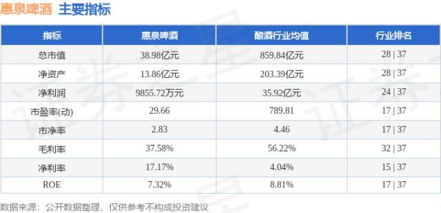 惠泉啤酒的主要經(jīng)營指標(biāo)及在行業(yè)內(nèi)的排名情況如下: