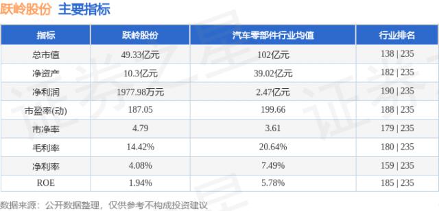 躍嶺股份的主要經(jīng)營指標(biāo)以及在行業(yè)內(nèi)的排名情況如下: