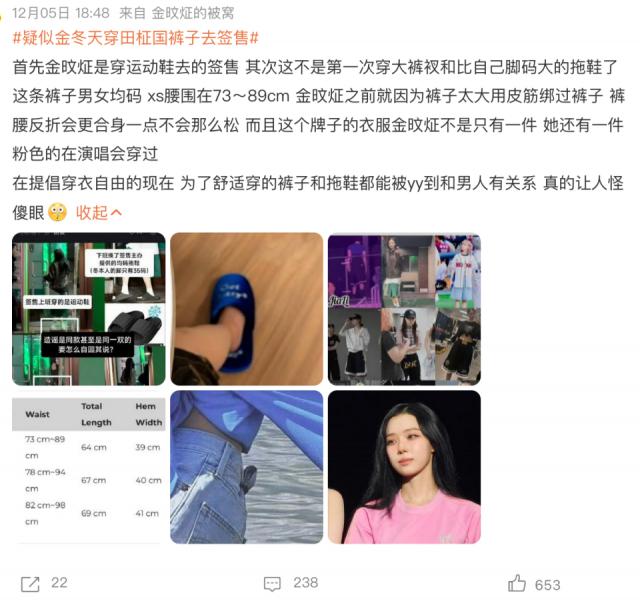隨著熱度上升,部分粉絲選擇脫粉回踩,有“前粉絲”爆料稱金冬天穿的“同款短褲”實(shí)際是田柾國(guó)的,甚至在簽售會(huì)當(dāng)天也有相關(guān)舉動(dòng),讓不少真愛(ài)粉感到心寒。
