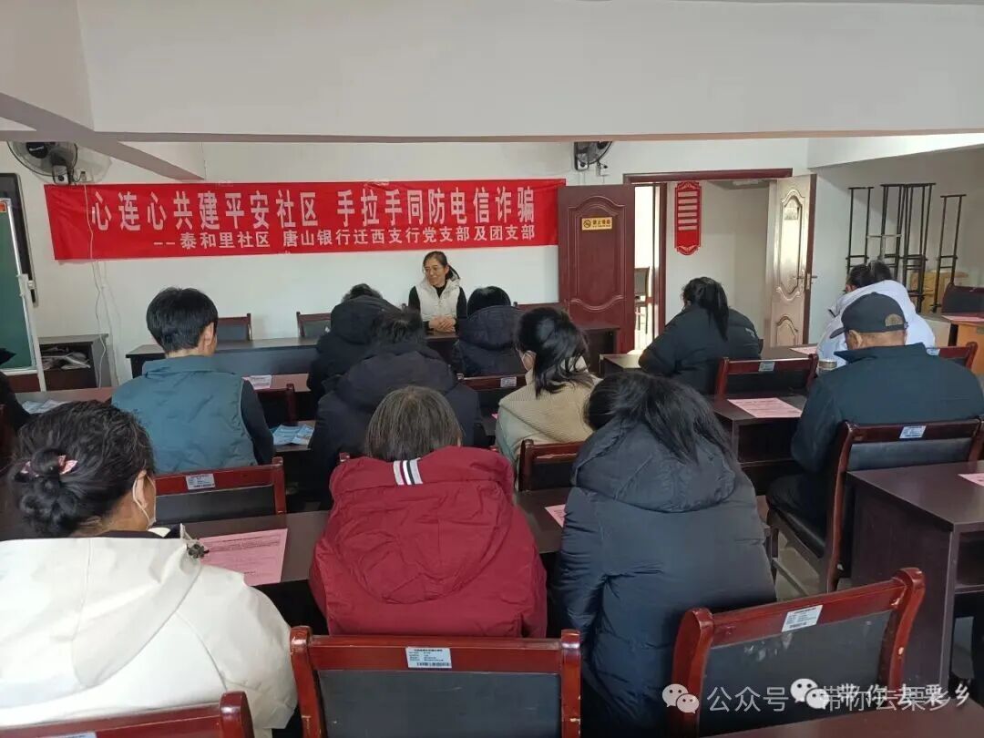 為切實(shí)提升轄區(qū)居民的防詐反詐意識,筑牢群眾財(cái)產(chǎn)安全防線,近日,栗鄉(xiāng)街道泰和里社區(qū)聯(lián)合轄區(qū)唐山銀行遷西支行,在社區(qū)新時(shí)代文明實(shí)踐站開展了“心連心共建平安社區(qū) 手拉手同防電信詐騙”主題宣講活動(dòng)。