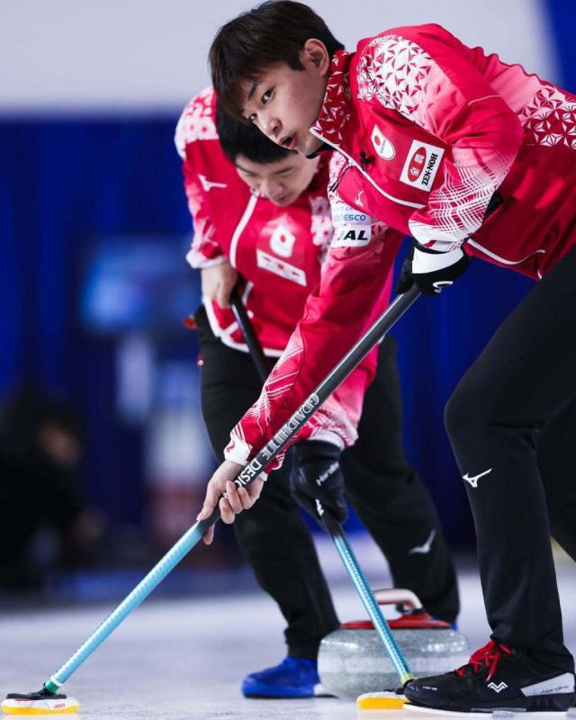 首局中國隊(duì)后手,雙方相互試探讀冰,日本隊(duì)為爭取偶數(shù)局后手權(quán)選擇空局。次局日本隊(duì)主動(dòng)進(jìn)攻,前三壘雙方發(fā)揮平穩(wěn),但徐曉明首投擊打角度偏薄,讓日本隊(duì)形成2分牽制并順利拿下2分。第三局中國隊(duì)迎來后手局,全隊(duì)狀態(tài)回升,李智超首投清理對手中線占位壺的同時(shí),將己方黃壺藏至邊區(qū)占位黃壺后封堵對手線路,徐曉明隨后兩投完成高質(zhì)量雙飛,幫助中國隊(duì)拿下2分追平比分。