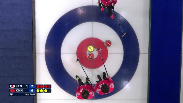 第四局日本隊(duì)展現(xiàn)出類似加拿大、瑞士隊(duì)的硬朗風(fēng)格,兩隊(duì)在大本營激烈拉扯,柳澤李空最后一投完成雙飛,一舉拿下4分,日本隊(duì)以6-2建立優(yōu)勢。第五局中國隊(duì)調(diào)整策略,將壺送入營中并拉開距離避免被清理,前三壘后形成2分局面,順利追至4-6結(jié)束上半場。